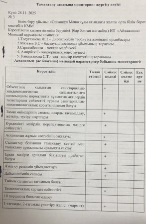 Мектеп сайты » Аттестация » Қосымшалар » Тамақтану » Ыстық тамақ мониторингі
